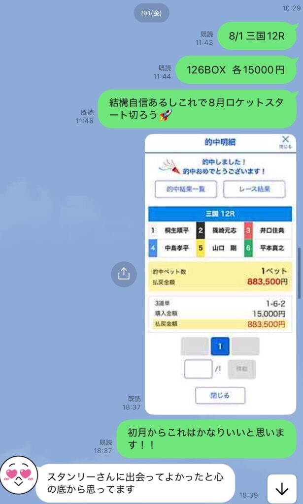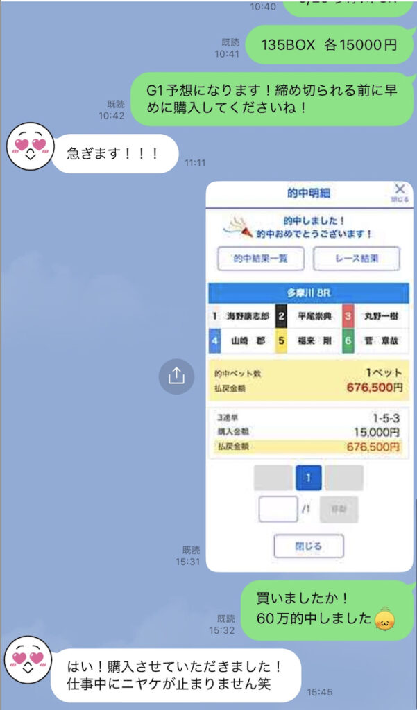 →予想を出すまでに情報の精査、過去傾向の検証、実際の勝率や流れの分析など、相応の時間と労力を使っています。だからこそ、「僕と同じやり方で収入源を増やしてる、増やそうとしてる人」のみ共有するというルールを設けています。